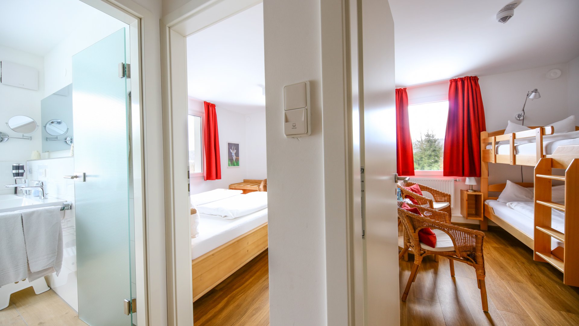 Familienzimmer mit Doppelbett, Kinderbett und Einzelbett