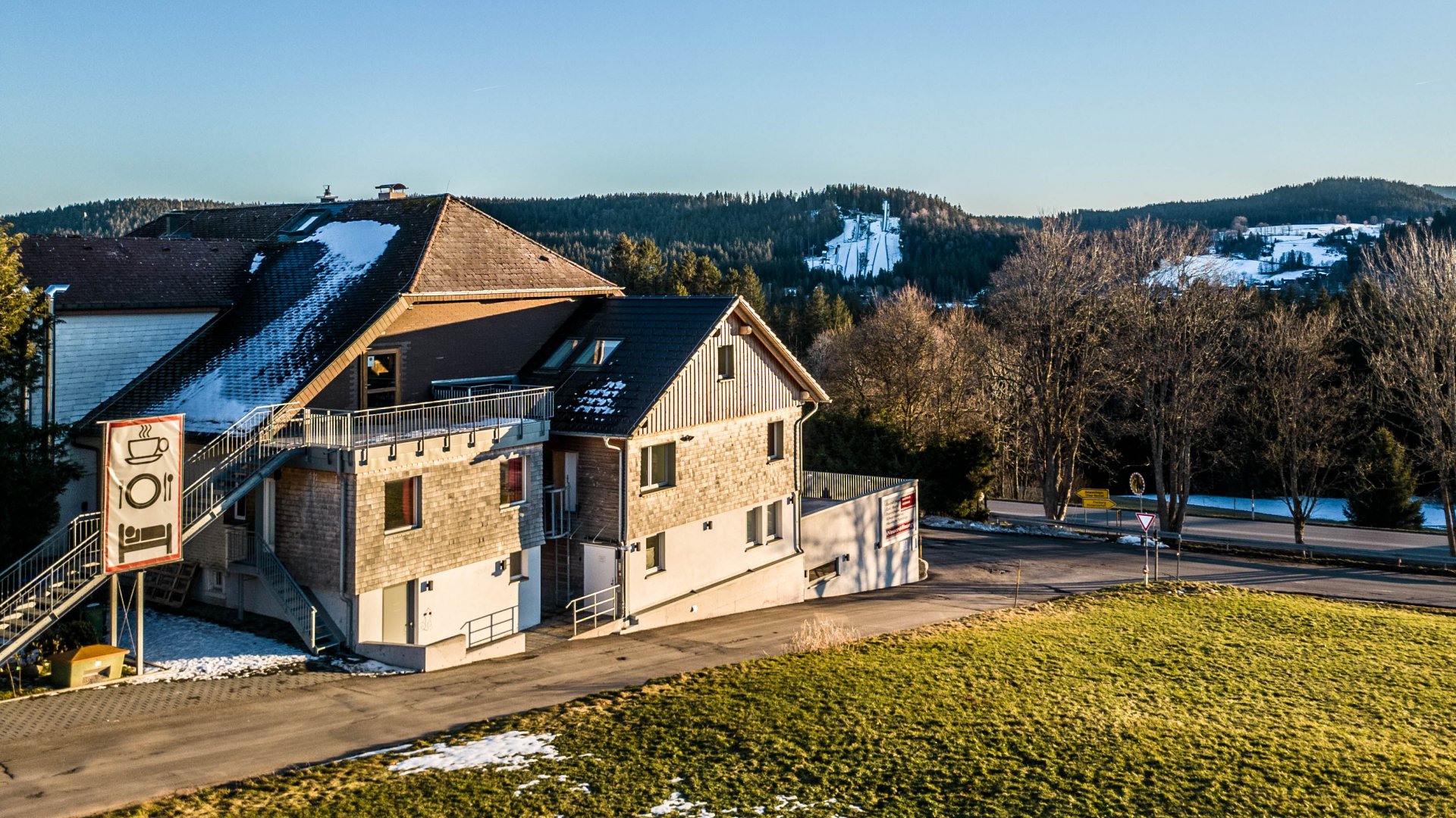 - Smoking area outside the building